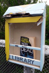 We finally have another Little Library nearly ready to be installed near the View Road bus stop. The cabinet has been made by local retired builder Barkie and painted by yours truly. It will start with some books from the Southern Landfill Recycle Centre, who we thank for a discount on their already low prices!