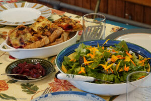 - Foraged salad, homemade bread, preserves, dips;