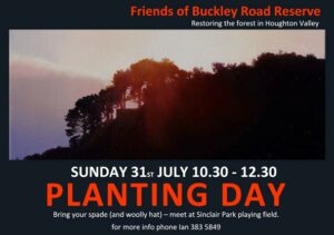 Planting natives: This Sunday with the Friends of Buckley Rd. Meet at Sinclair Park playing fields, 10.30-12.30. Then coffee afterwards! See you there, Ian and Kate.