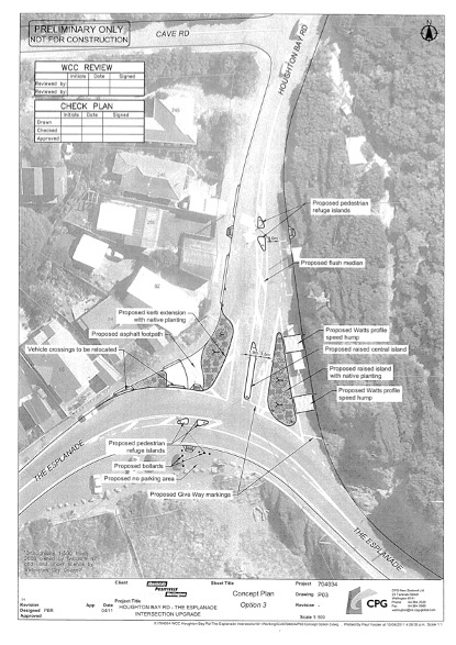 I am writing to you on behalf of residents in the Houghton Bay area about proposed changes to the intersection of Houghton Bay Rd and The Esplanade. We are delighted at this council initiative, the safety of users of this intersection is something discussed in some detail recently via the email newsletter circulated to 100-plus people in the area. This communication is intended as a first response to your request for feedback: