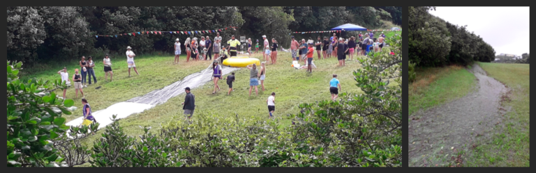 It was a great afternoon up at the Alice Krebs Lodge to celebrate Founder’s Day for the Kae Miller Trust, and to show some community and Matariki care for Te Raekaihau. Lots of talking and eating in the lodge, walking on the headland, planting around the lodge and tackling the tradescantia infestation, a long overdue project, but still with quite a bit more to do despite an awesome effort. All in all about 33 people came. It was stunning weather too with beautiful early evening light.