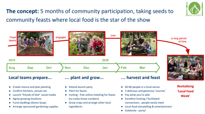 There are more photos posted on the Seeds-to-Feeds Facebook Page. There are also photos from the other events, they were all very different! Across the six events there were a a total of 464 creative, locally characterful and delicious meals. 160 of these went to people in need in the community, including some who were self-isolating.
